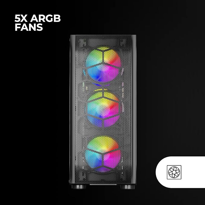 Caja: MARS GAMING MC-KX E-ATX XL – Panel lateral de cristal templado y 5 ventiladores ARGB de 12cm preinstalados.