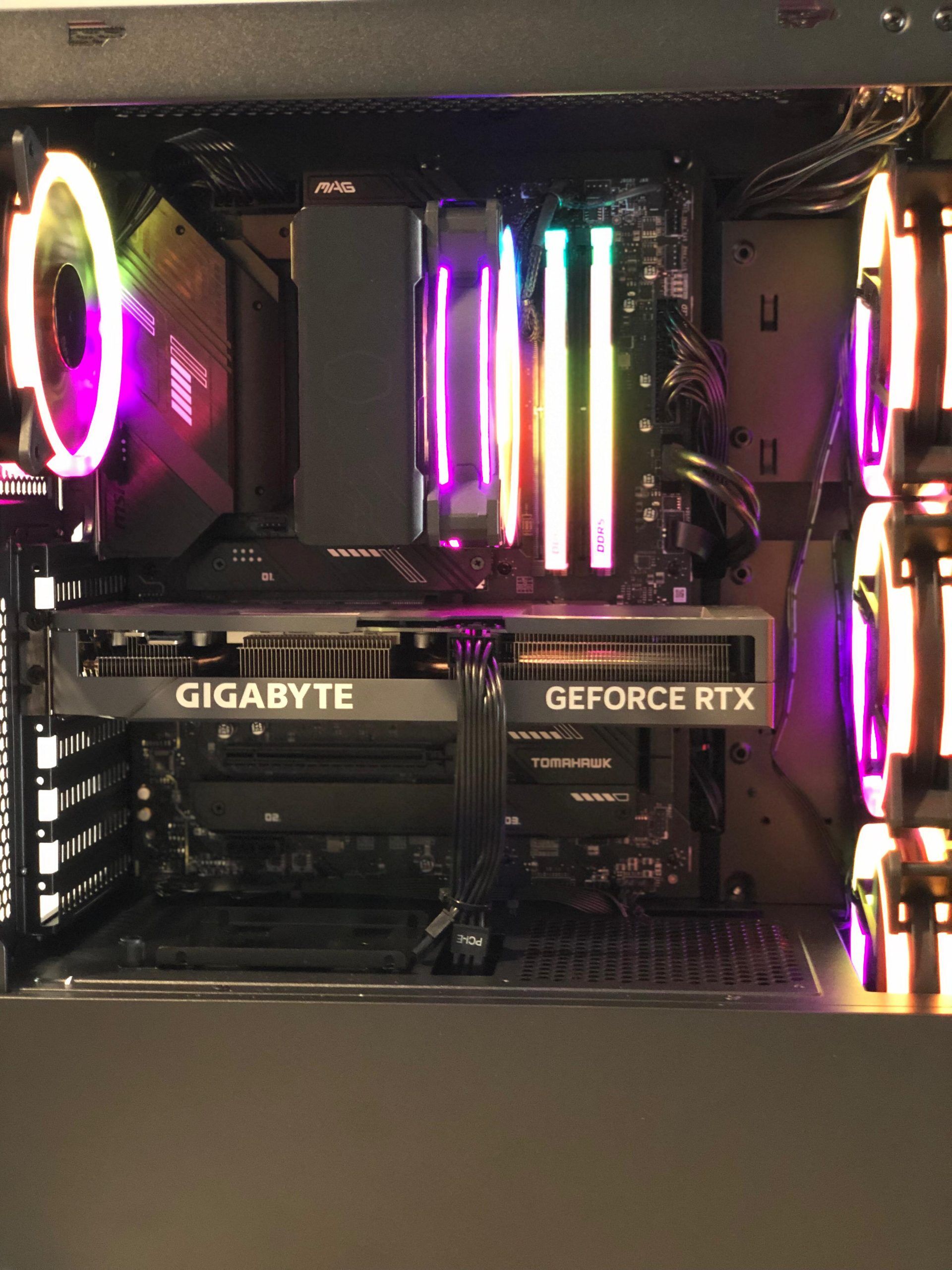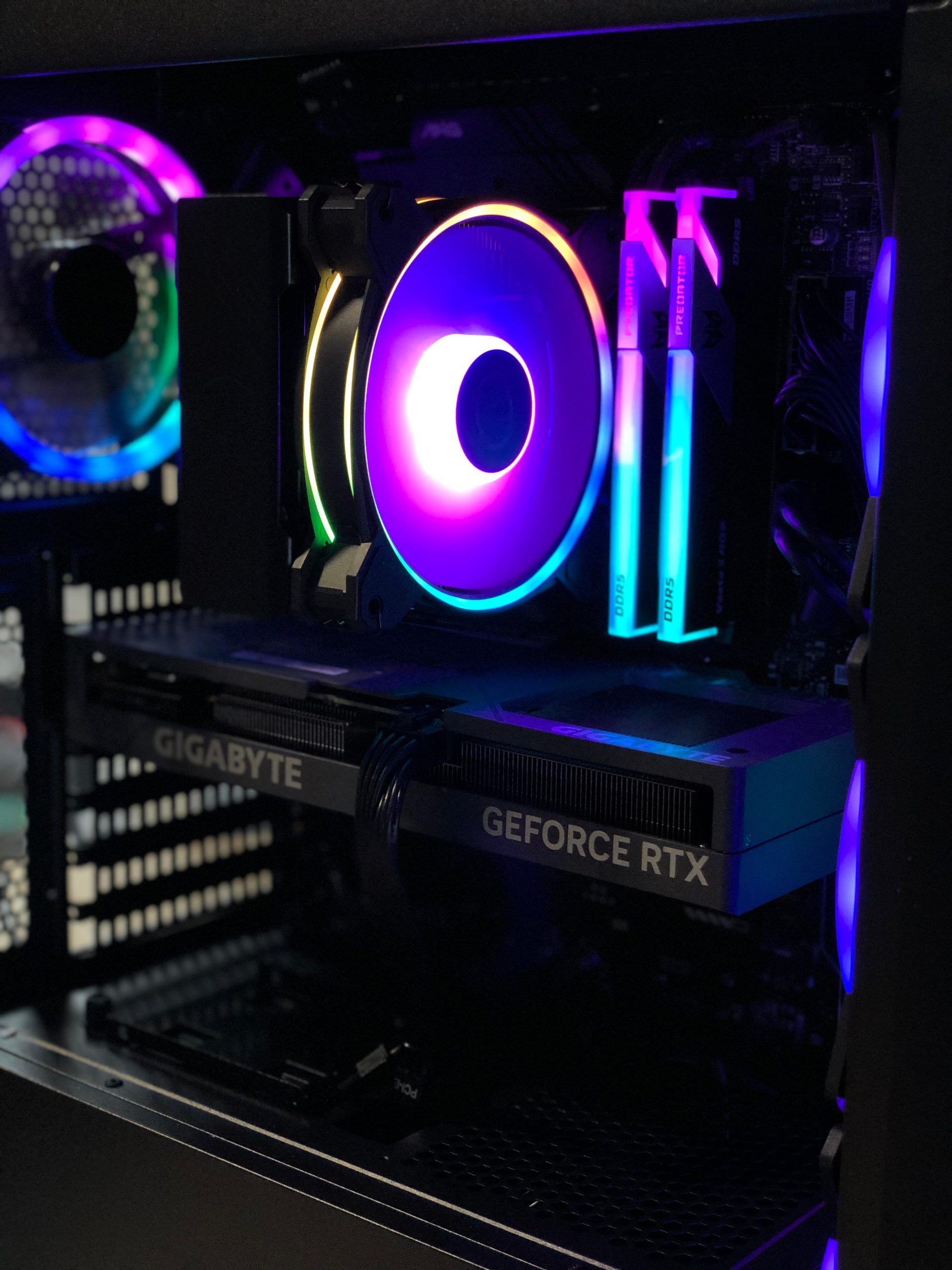 - Memoria RAM: 32GB DDR5 6000MHz RGB con disipador propio.