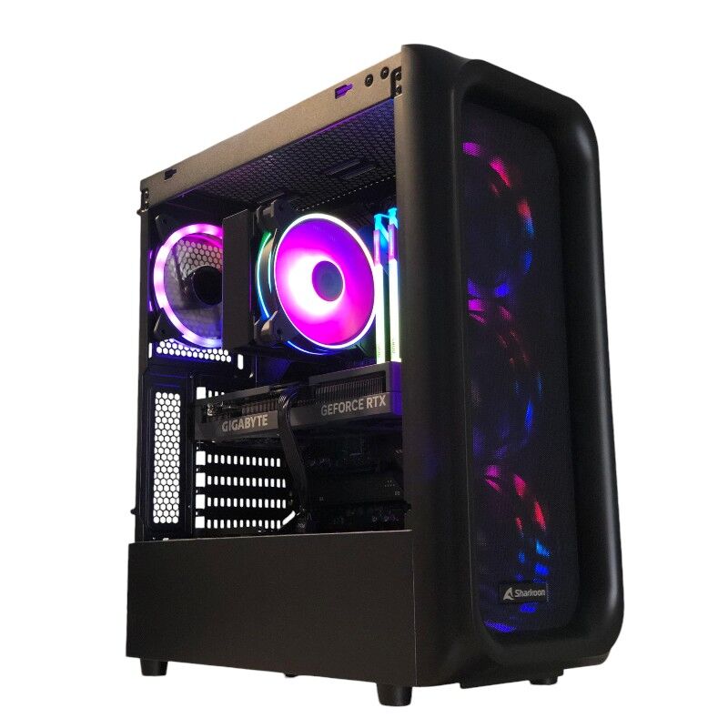 - CAJA/CHASIS: TORRE SHARKOON TK5M RGB NEGRA + 3 VENTILADORES ARGB