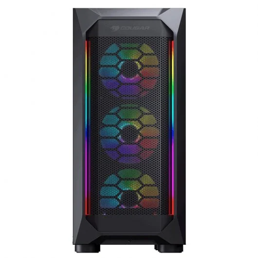 💼 Caja: Cougar MX410 Mesh-G RGB – Diseño con gran ventilación y estética moderna RGB